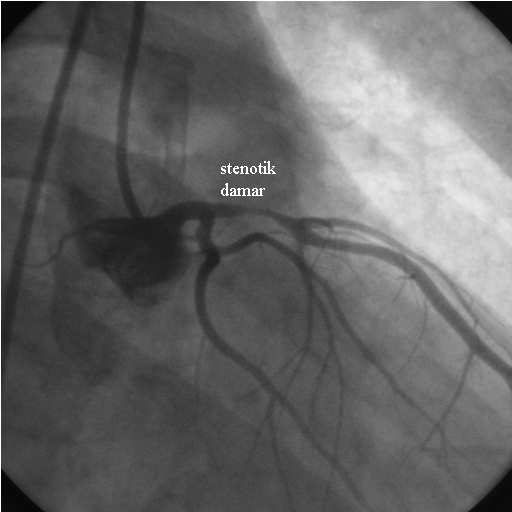 Bu işlem esnasında hastanın yine kol veya kasık damarı içinden girilerek darlık bölgesine kadar çok ince bir kılavuz tel sonrasın da bu telin üzerinden ince bir balon sönük halde ilerletilir, tam darlığın üzerinde bu balon şişirilerek o bölge genişletilir, eğer stent takılacaksa üzerinde stent yerleştirilmiş özel balonlar lezyonlu damar seviyesine kadar ilerletilerek darlık bölgesinde şişirilir ve damar genişletilir. Stent damarda bırakılır. Şekil-3’de ise stent uygulamasını takiben başarıyla damarı açılmış olan sol ön inen koroner arter görüntüsü sunulmaktadır. Eğer damarlar bu yöntemlerle yani ameliyatsız olarak açılamayacaksa, koroner by-pass ameliyatı ile darlıkların ilerisine ek damarlar bağlanabilir.